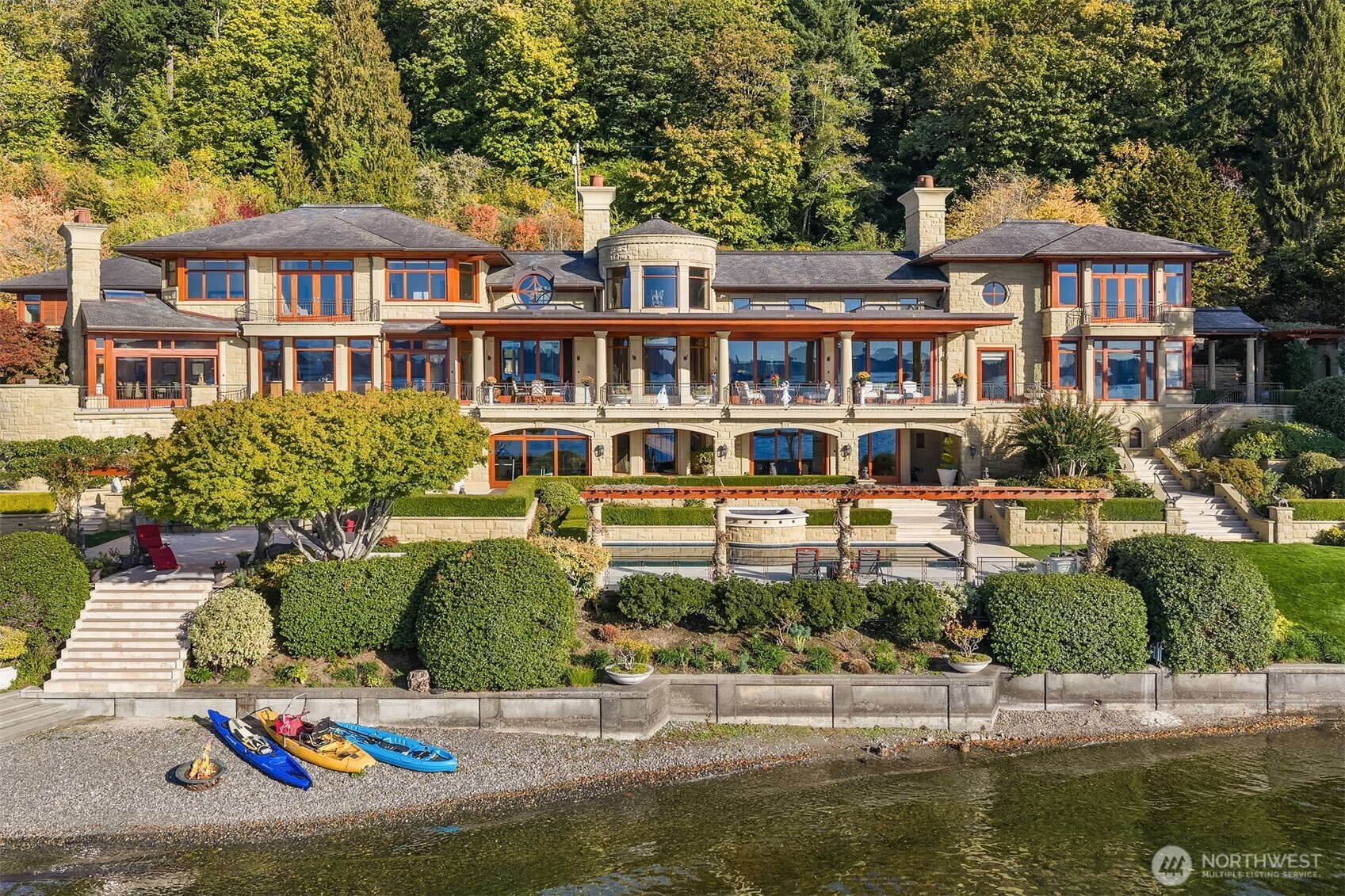 Introducing one of the Pacific Northwest’s most distinguished waterfront estates, set on 2.6 acres of manicured grounds in the heart of Meydenbauer Bay. This European-inspired waterfront masterpiece boasts 268 feet of private waterfront. Enjoy panoramic views of Lake Washington, Seattle’s skyline, and the Olympics. Timeless elegance defines every meticulously crafted detail—exquisite millwork, luxurious materials, and seamless fusion of classic grandeur with modern ease. Expansive verandas flow to manicured gardens, a resort-caliber pool, and private dock, perfect for lavish soirées or serene lakeside retreats. A legacy estate of unparalleled sophistication. This is a once in a lifetime opportunity.